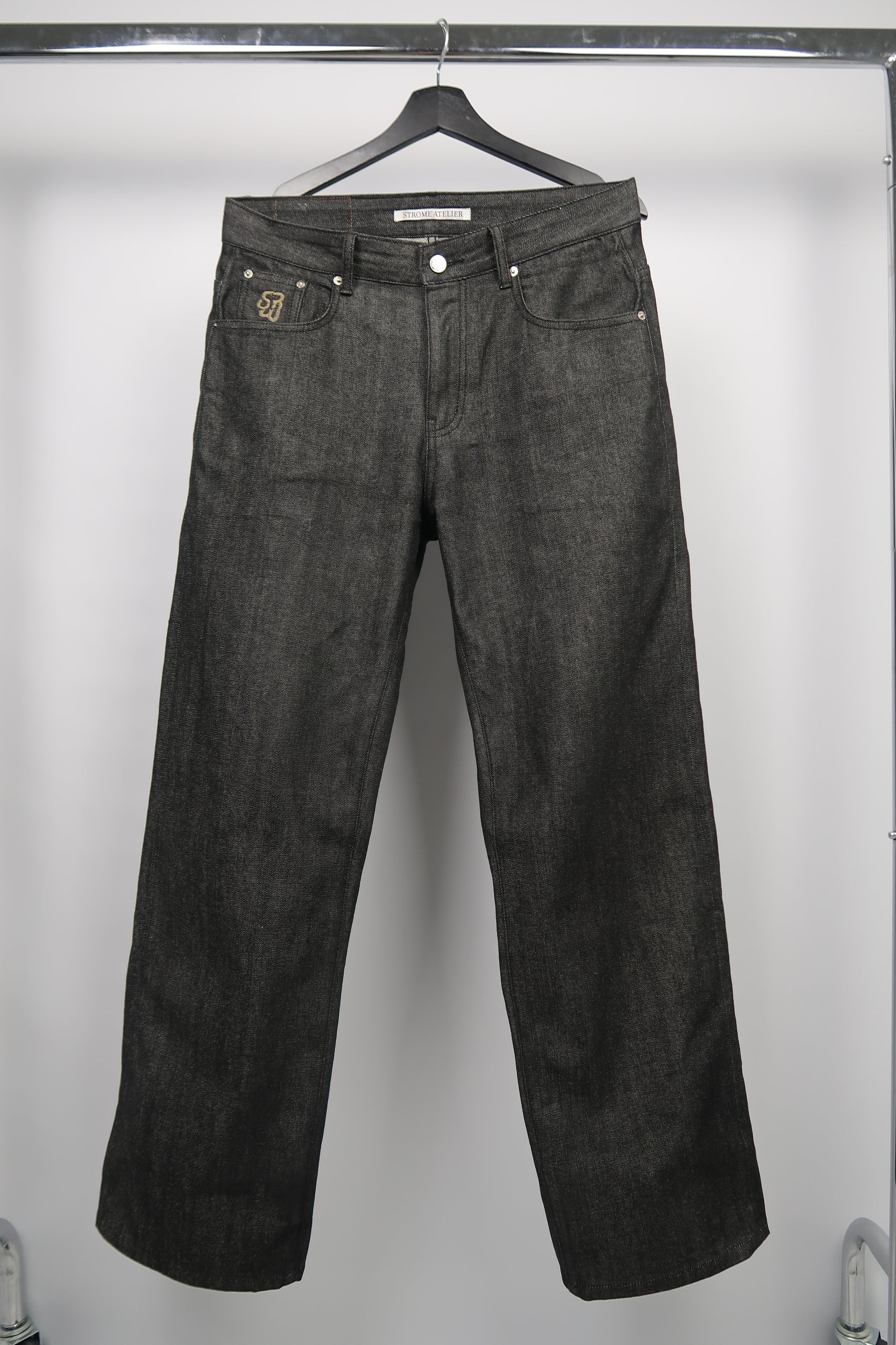 Produceret i 15 oz raw selvedge denim, skabt til at blive brugt ind og brudt ind, så de former sig unikt efter dig. Pasformen er døbt "Formally loose" tiltænkt til at kunne passe til en god bytur, og et bryllup dagen efter. skabt med øje for detaljerne: Broderet Strome logo i møntlommen.